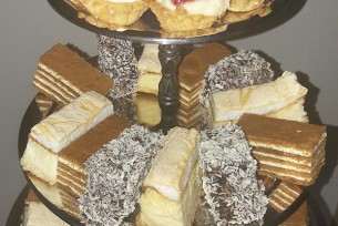 Meat and cheese platters, oscypek/crankbaits, vegetable salad, grilled chicken salad, 2 types of bread, fruit platter.